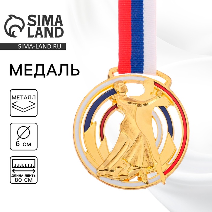 Медаль золото «Бальные танцы», d=6 см, с лентой