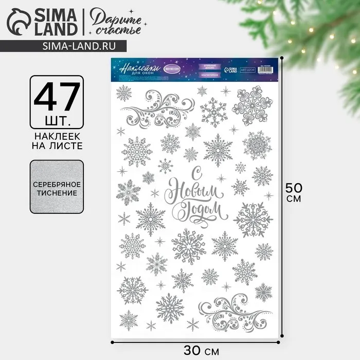 Наклейки новогодние виниловые с фольгированием «Новый год», 30 х 50 см