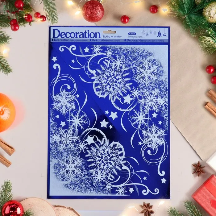 Наклейки новогодние на окна «Узорные снежинки» , многоразовые, 33 х 50 см