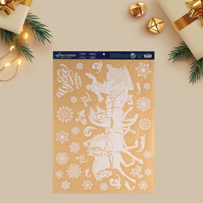 Наклейки новогодние на окна «Зима - время чудес», многоразовые, 20 х 34 см