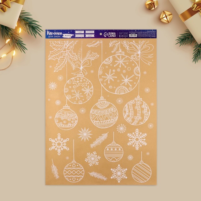 Наклейки для окон «Новогодние игрушки», многоразовые, 33 х 50 см