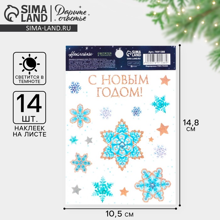 Наклейки новогодние со светящимся слоем «С Новым годом», 10.5 х 14.8 см