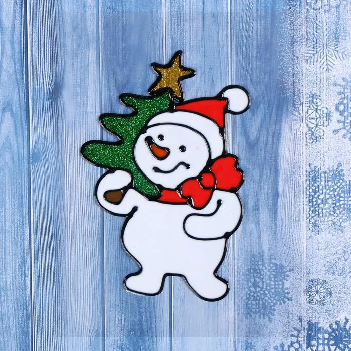 Наклейка на стекло «Снеговик с ёлкой», 9×14.5 см