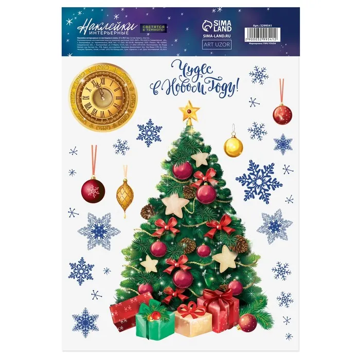 Наклейки новогодние, интерьерные со светящимся слоем «Чудес в Новом Году», 21 х 29,7 см