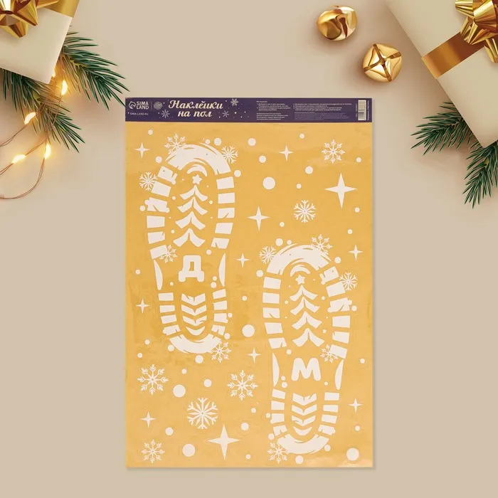 Наклейки на пол виниловые новогодние «Следы Деда Мороза», белые