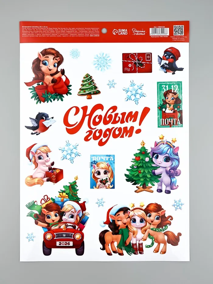 Интерьерная наклейка «С Новым 2026 годом!», лошади, 29.7 х 42 см