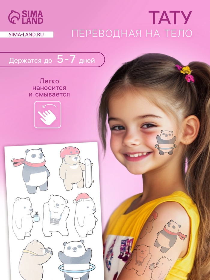 Переводные тату на тело цветные «Мишки. Увлечения», 12×7.5 см, МИКС