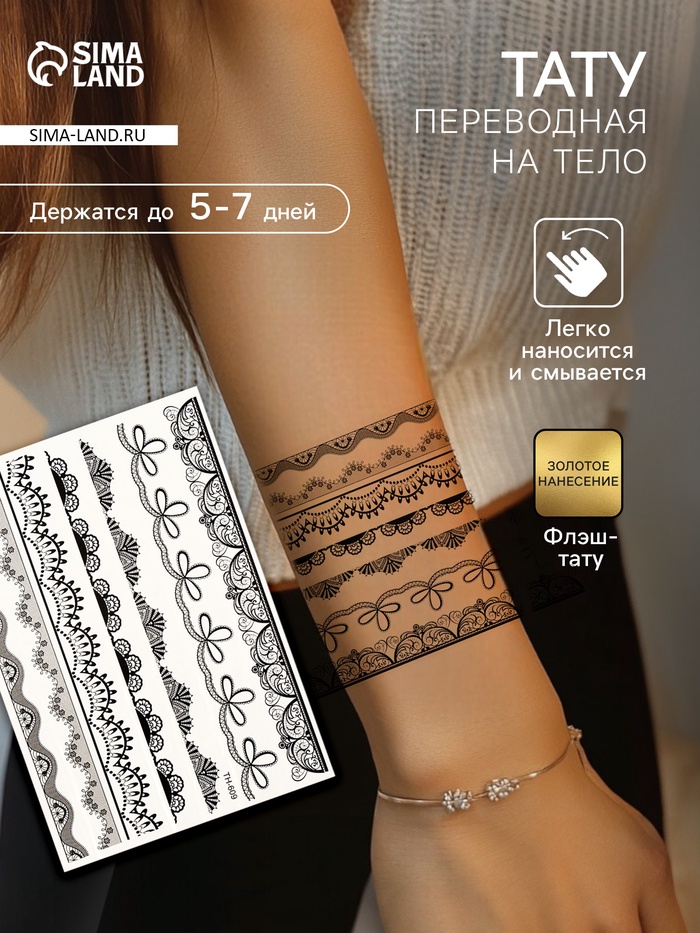 Переводные тату на тело чёрные «Кружево», 25×15 см