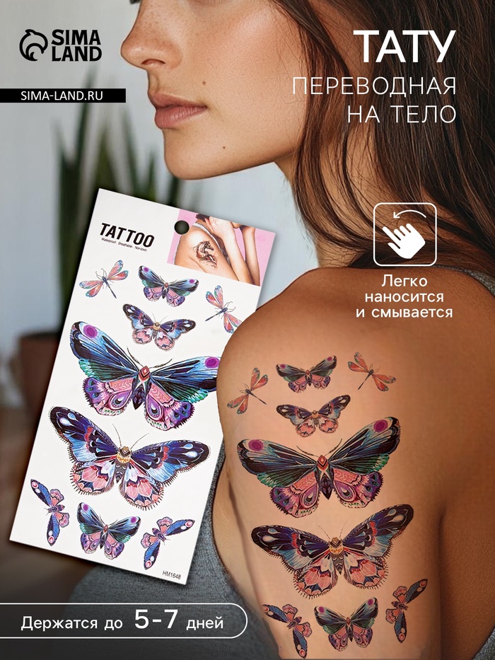 Переводные тату на тело цветные с блёстками «Бабочки», 14.7×10.5 см