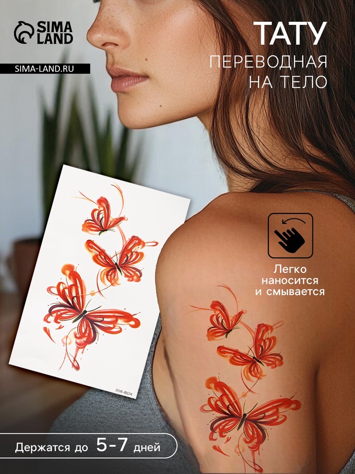 Переводная тату на тело цветная «Бабочка в чернилах», 11.4×21 см