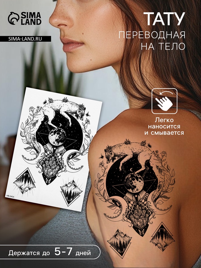 Переводные тату на тело цветные «Девочка с волком», 21×14.8 см
