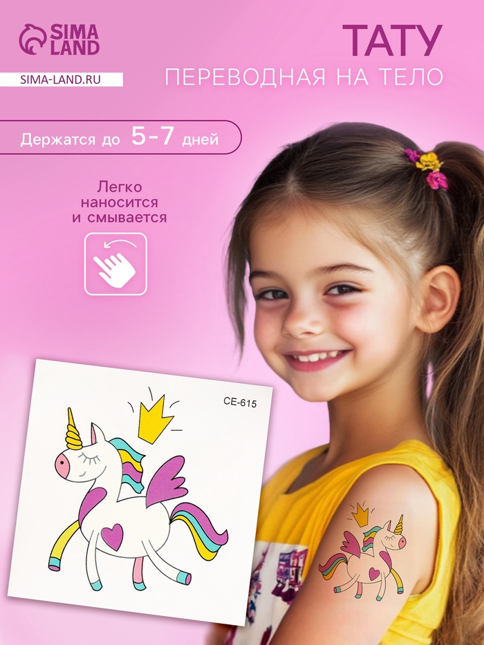 Переводная тату на тело цветная «Единорожек с короной», 6×6 см