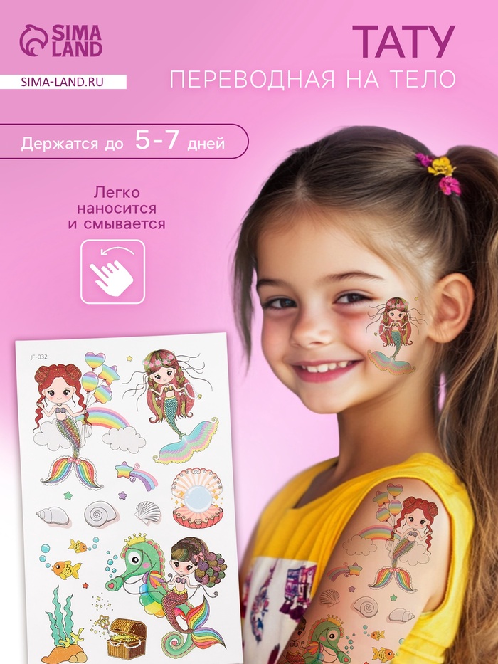 Переводные тату на тело цветные «Русалочка. Радуга», 12×7.5 см