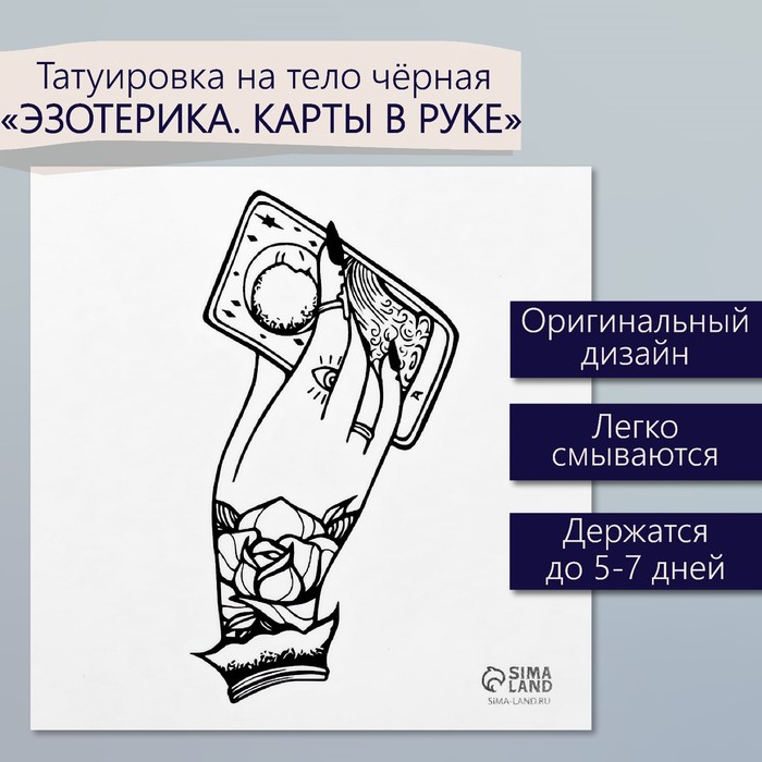 Переводная тату на тело чёрная «Эзотерика. Карты в руке гадалки», 6×6 см