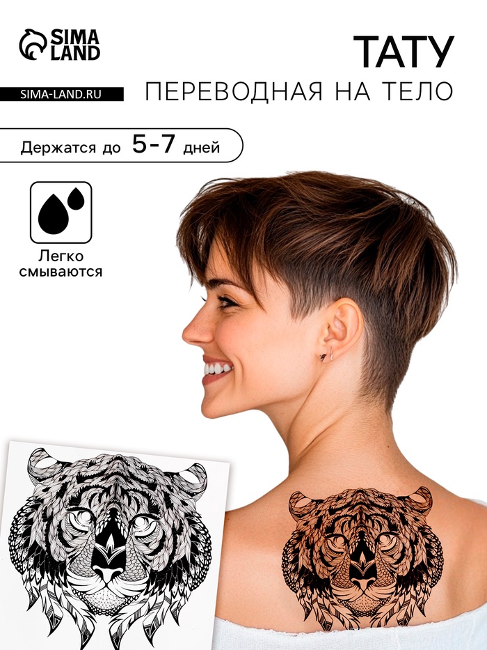 Переводная тату на тело чёрная «Тигр», 38×24 см