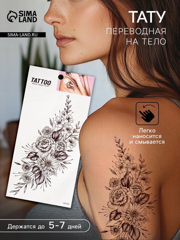 Переводная тату на тело чёрная «Цветочная композиция», 10×20.5 см