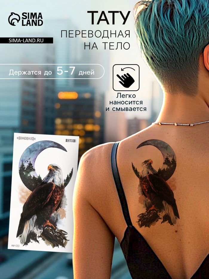 Переводная тату на тело цветная «Орёл и месяц», 9×16 см