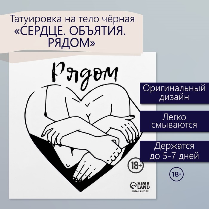 Переводная тату на тело чёрная «Сердце. Объятия. Рядом», 6×6 см