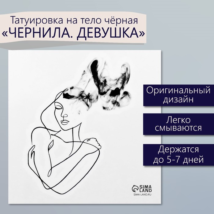 Переводная тату на тело чёрная «Чернила. Девушка», 6×6 см
