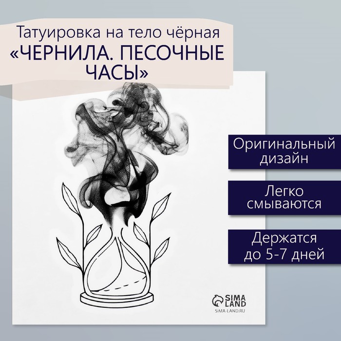 Переводная тату на тело чёрная «Чернила. Песочные часы», 6×6 см