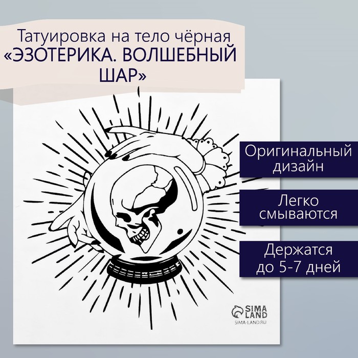 Переводная тату на тело чёрная «Эзотерика. Волшебный шар», 6×6 см