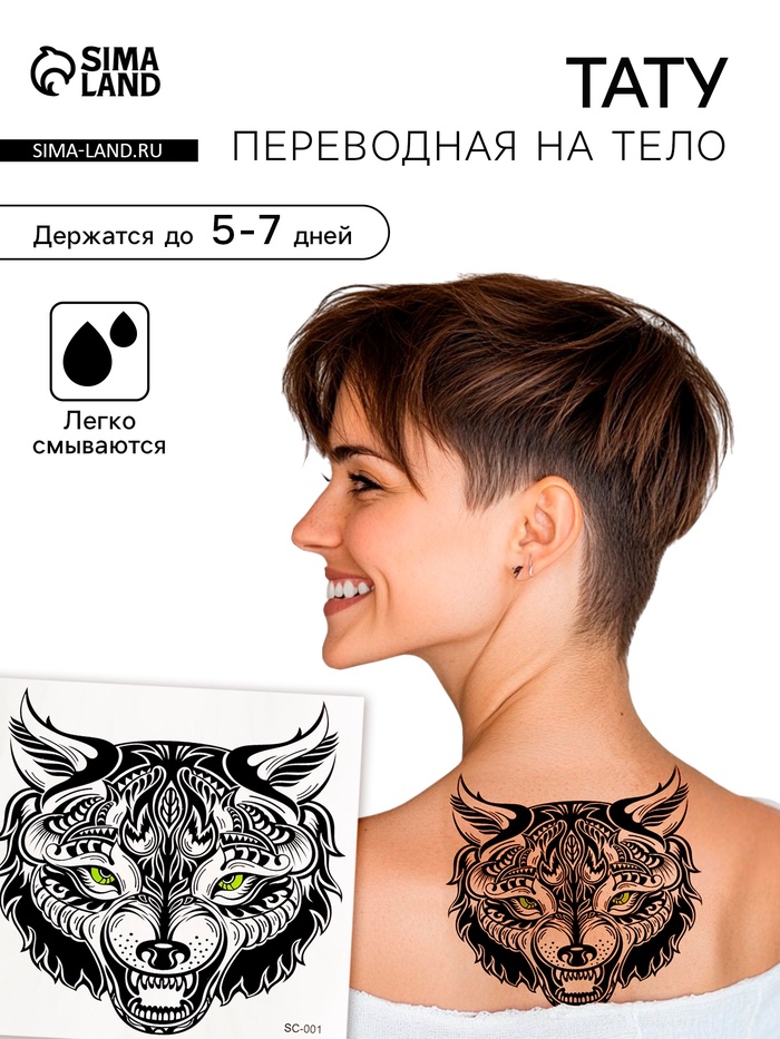 Переводная тату на тело чёрная «Волк», 38×24 см