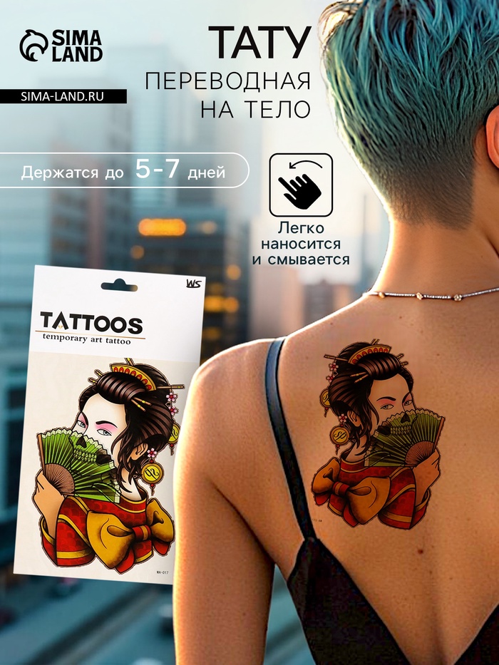 Переводная тату на тело цветная «Гейша вечная», 26.1×14.6 см