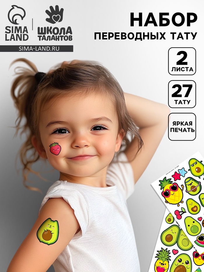 Переводные татуировки детские «Авокадо», 2 листа тату