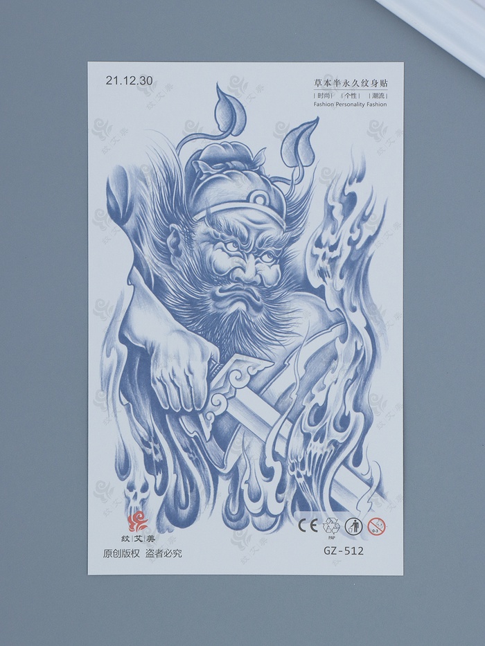 Переводная тату на тело «Китайский воин с веером - крик», 18×11 см