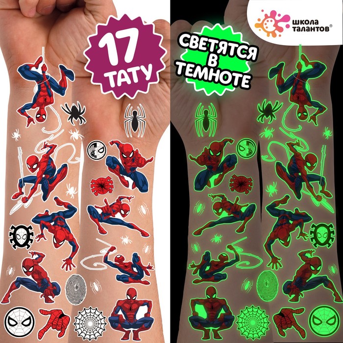Переводные татуировки детские, светятся в темноте «Человек паук»