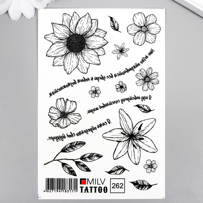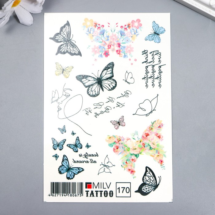 Татуировка на тело "Бабочки и надписи" 10х15 см