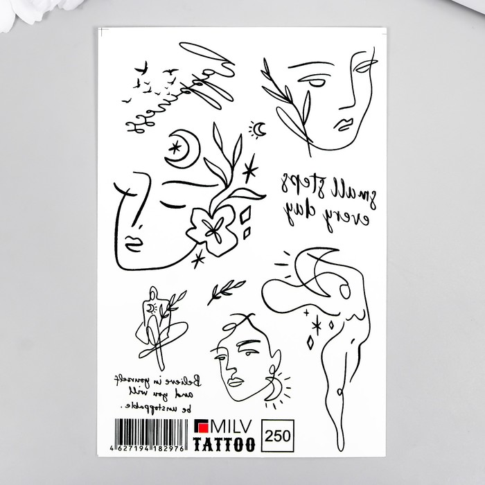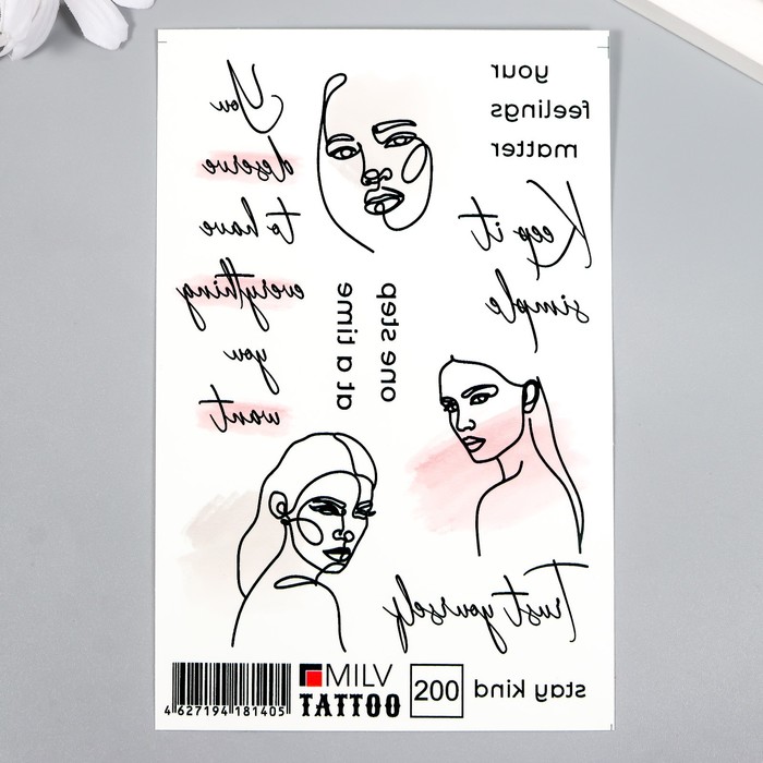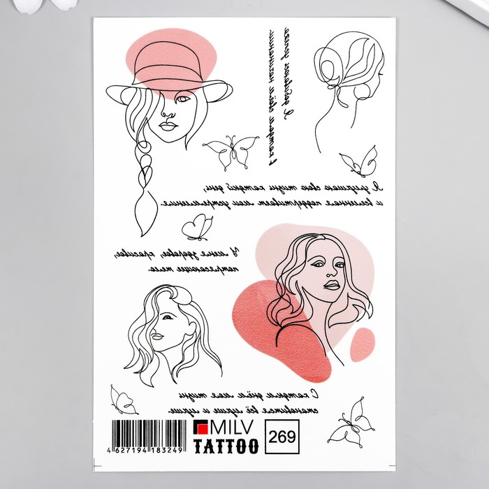 Татуировка на тело "Девушки и надписи" 10х15 см