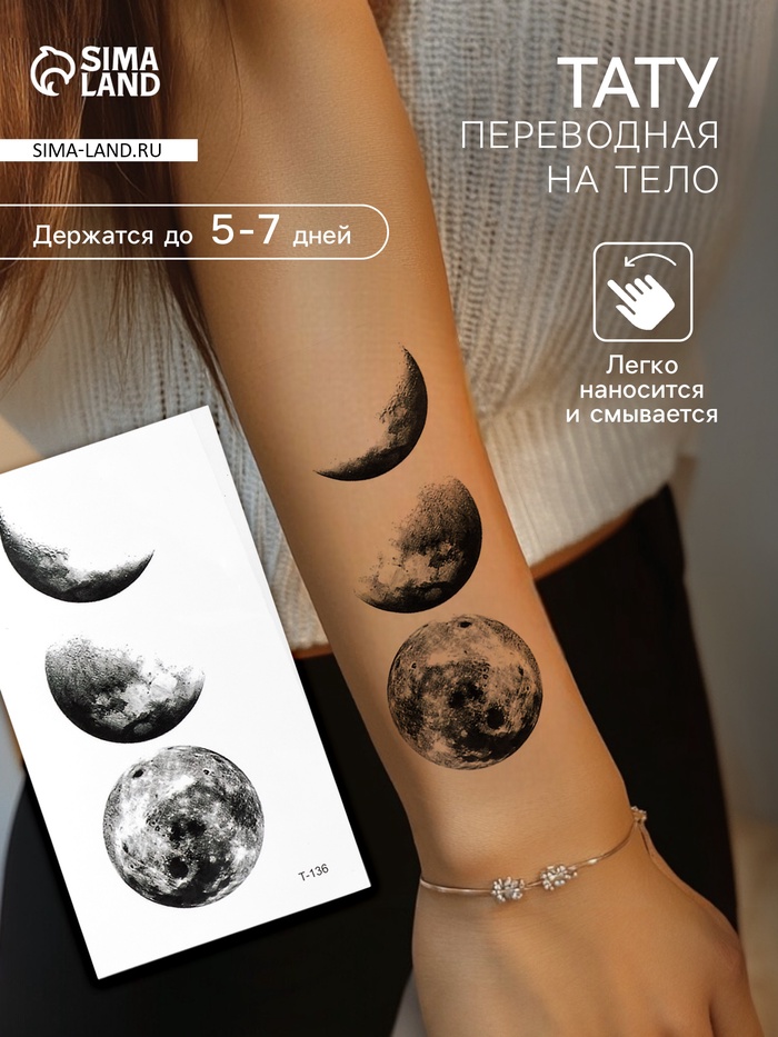 Переводные татуировки детские «Фазы луны», тату — 10 шт.