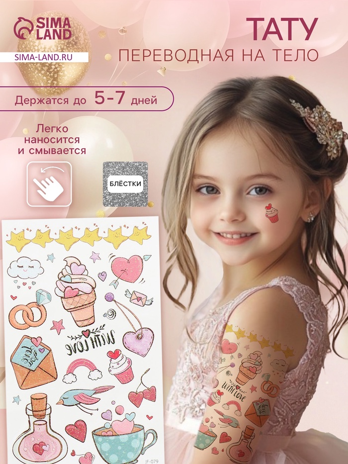Переводные тату цветные «Письмо любви», временные татуировки с блёстками, 12×7.5 см