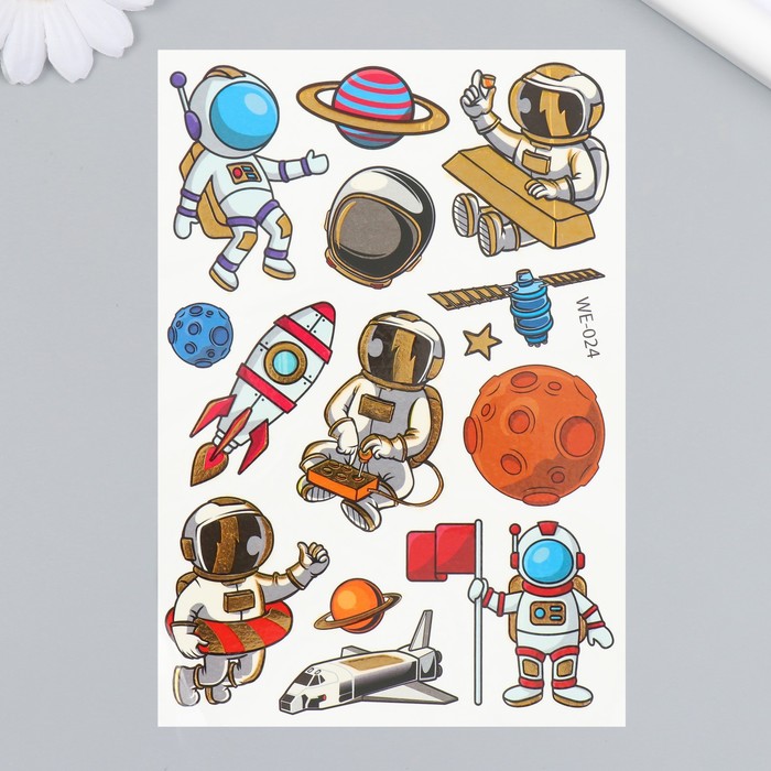 Переводные тату цветные «Космический герой», временные татуировки с золотом, 15×10.5 см