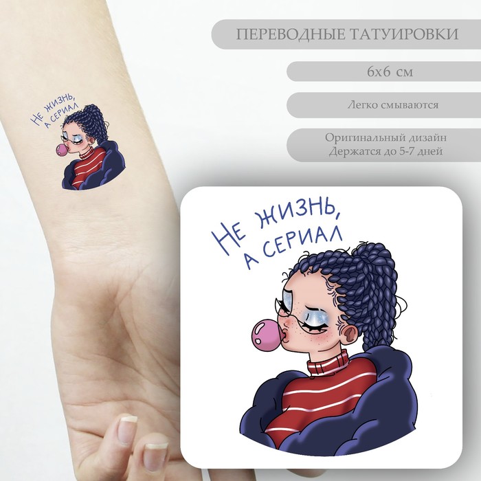 Переводная тату на тело цветная «Малышка с пузырём: Не жизнь, а сериал», 6×6 см