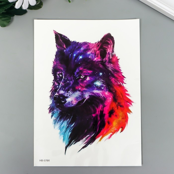Переводная таут на тело цветная «Волк звёздное небо», 21×15 см