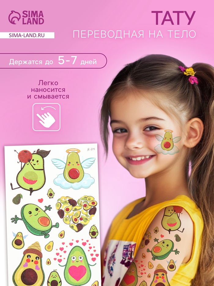 Переводные тату на тело цветные «Авокадинки», 7.5×12 см