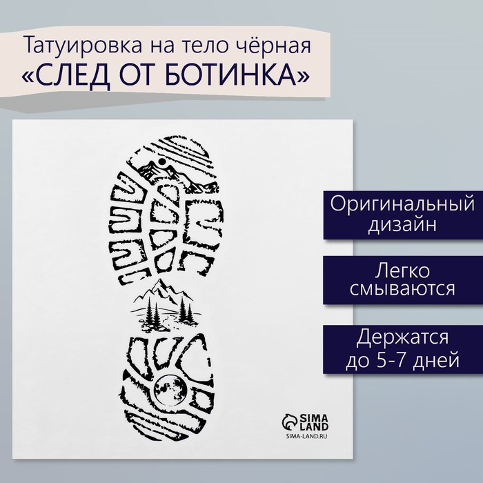 Переводная тату на тело чёрная «След от ботинка», 6×6 см