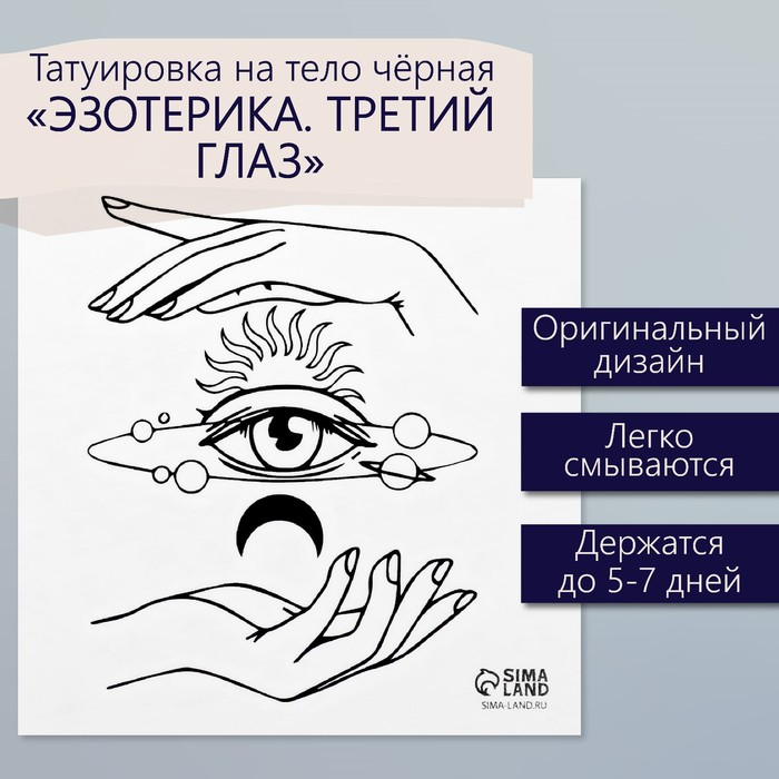 Переводная тату на тело чёрная «Эзотерика. Третий глаз», 6×6 см