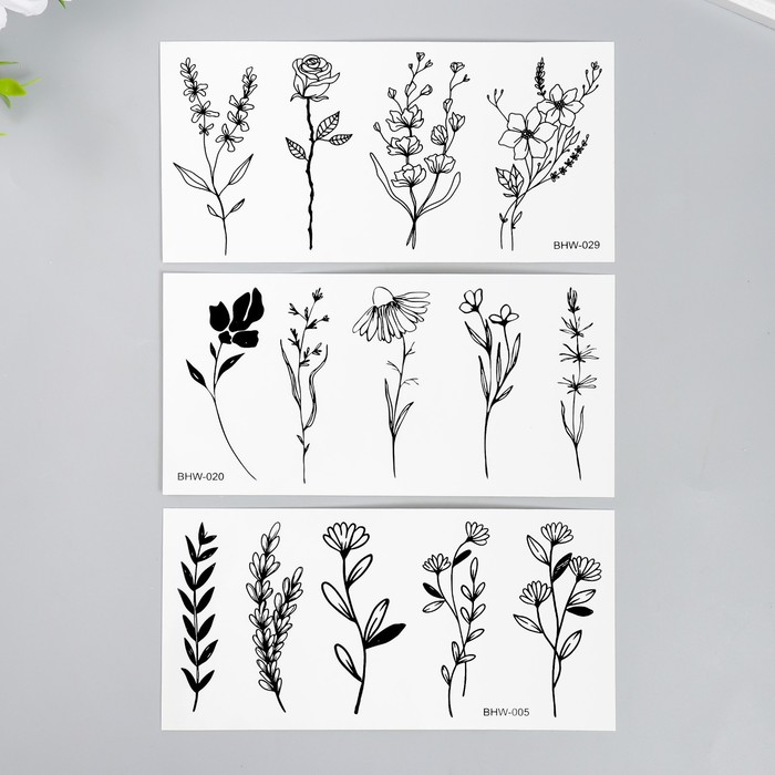 Переводные тату на тело чёрные «Цветочная», 14×7 см, МИКС