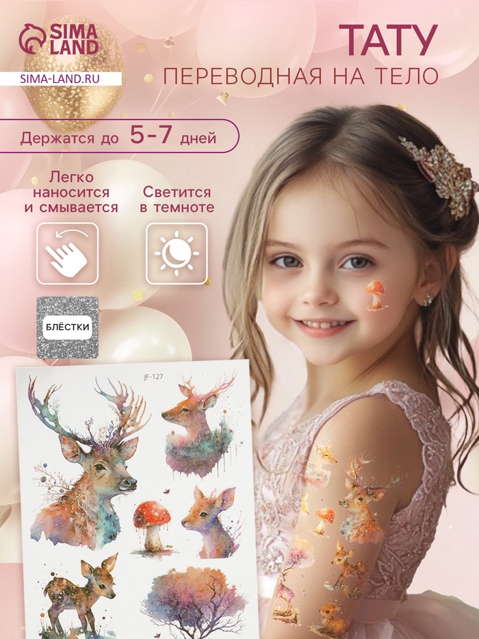 Переводные тату на тело светящиеся с блёстками «Олень», 7.5×12 см