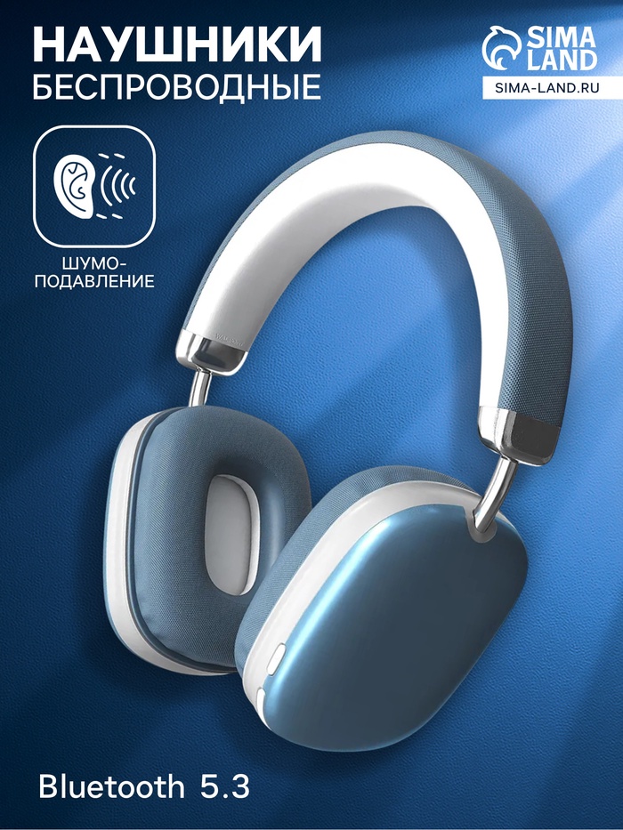 Наушники беспроводные, полноразмерные, AKZ MAX10, с шумоподавлением, с микрофоном, с подсветкой, синие