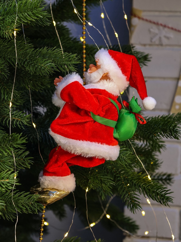 Дед Мороз «В шубке, на верёвочке» 25×13 см, 100 см, движение, музыка, красный