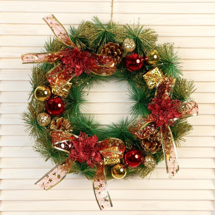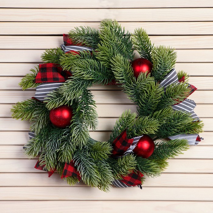 Венок новогодний d=40 см «Зимнее волшебство. Клетчатые бантики»