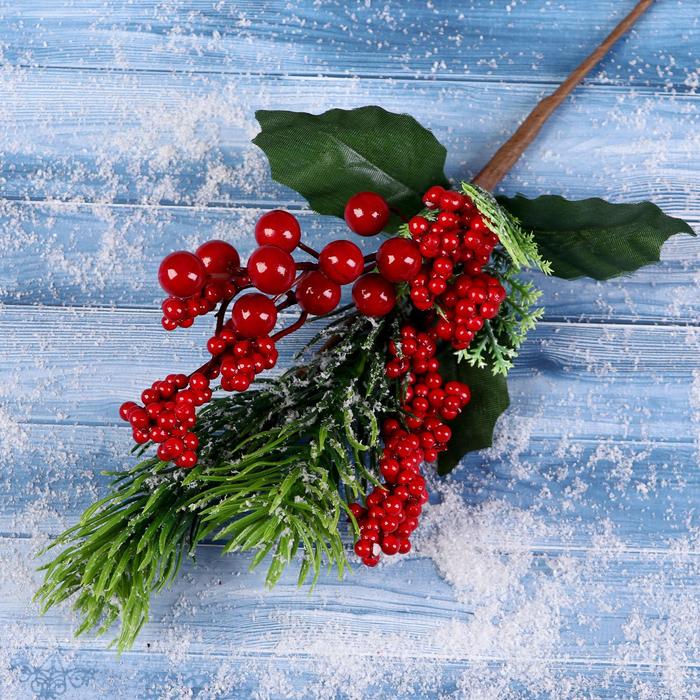 Еловая ветка декоративная «Зимнее волшебство. Сияние», ягоды, хвоя, листья, 19 см
