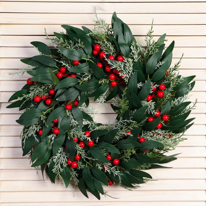 Венок новогодний d=33 см «Зимнее волшебство. Уютная сказка» листья, ягоды, веточки