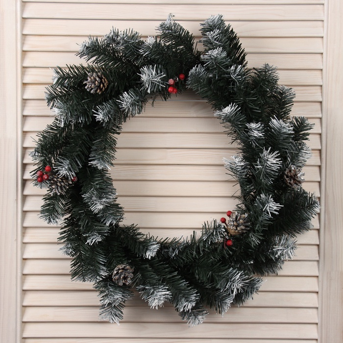 Венок новогодний d=55 см «Рождественский иней» декор шишка серебро, ягода