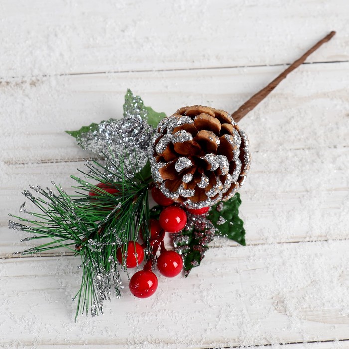 Еловая ветка декоративная «Зимнее волшебство. Очарование», шишка, ягоды и хвоя, 20 см