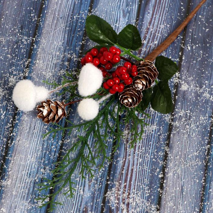 Еловая ветка декоративная «Зимнее волшебство. Грёзы», ягоды, шишка, 26 см